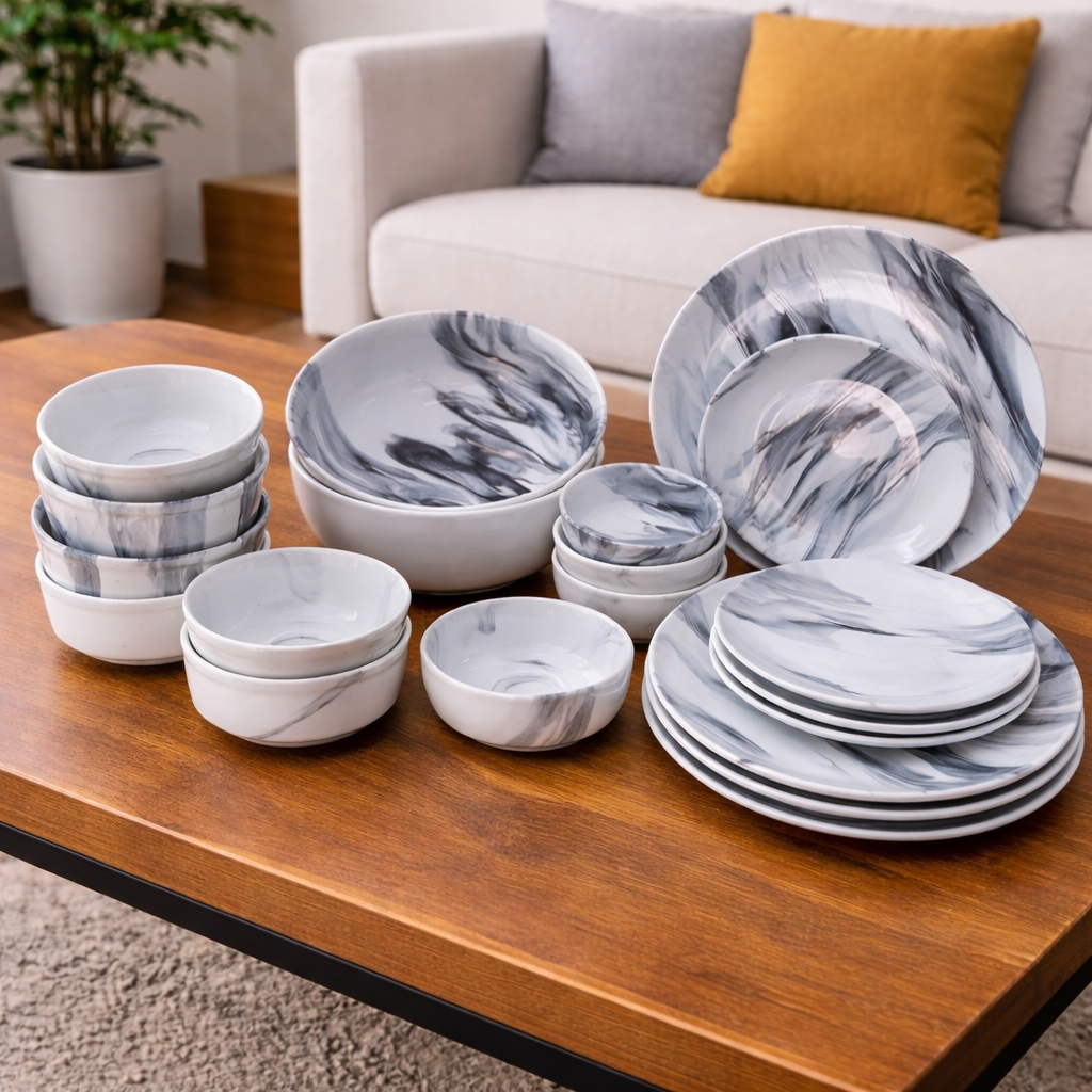 Accents 18 PCS Marble Finish Dinner Set