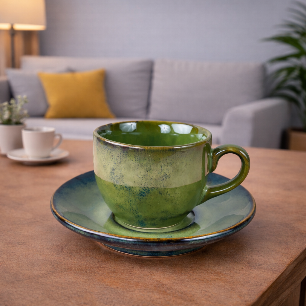 The saucer serves as a practical and decorative element of the set. With a diameter of 5.5 inches, it provides a stable base for the cup and helps catch any drips or spills. The saucer may feature decorative patterns or a smooth surface, complementing the design of the cup and adding a touch of elegance to your table setting.