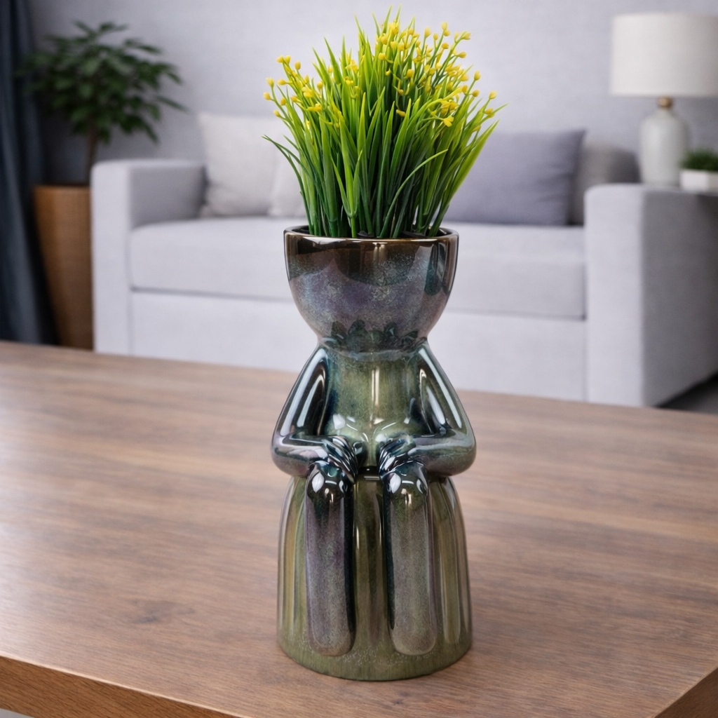 Accents Human Shaped Mini Succulent Ceramic Plant Pot - H6" D4"