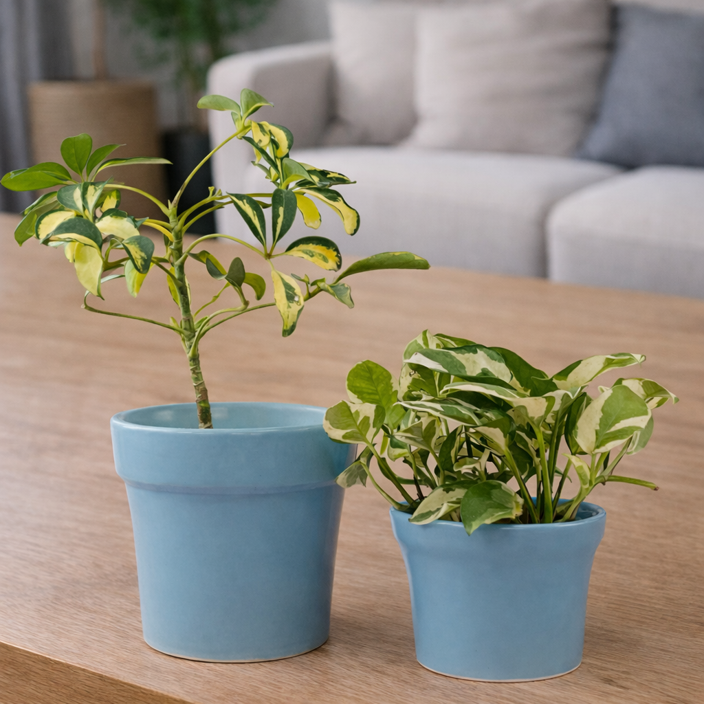 Accents H6" D6.5"Blue and Grey Colour Ceramic Plant Pot (SET OF 2)