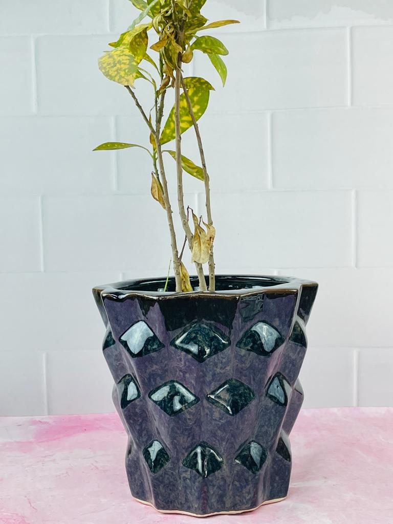 Accents Diamond Shaped Ceramic Plant Pot H7.5" D8"
